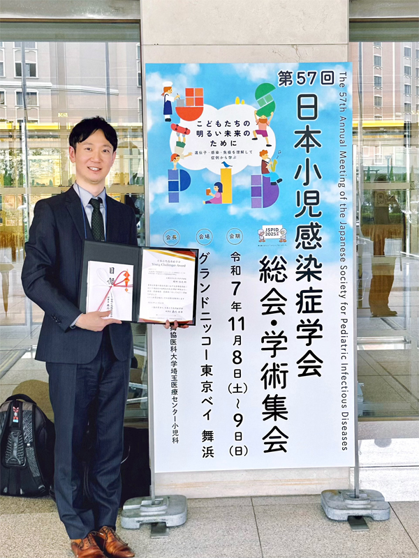 11月8日・9日に千葉県で開催されました「第57回日本小児感染症学会総会・学術集会」で、福田裕也先生が「日本小児感染症学会 Young Challenger Award (YCA)」を受賞いたしました。